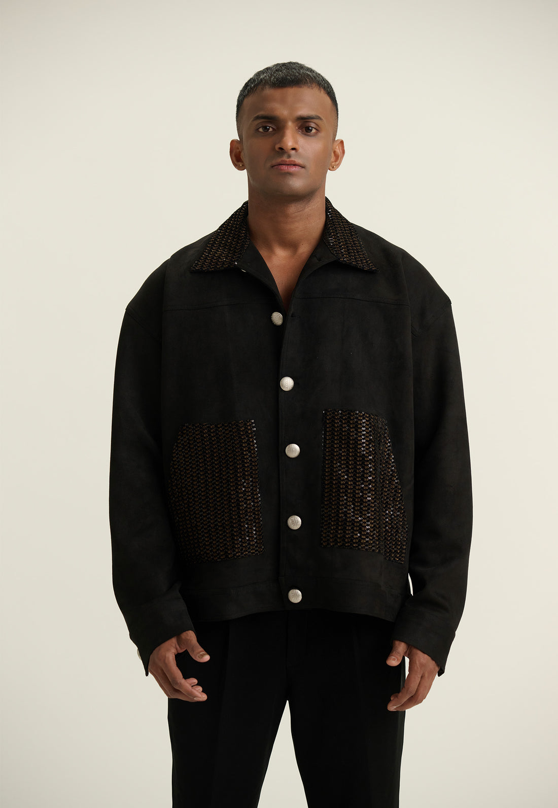 The Midnight Loom Jacket is Uddgo at its most rare – a black suede jacket...