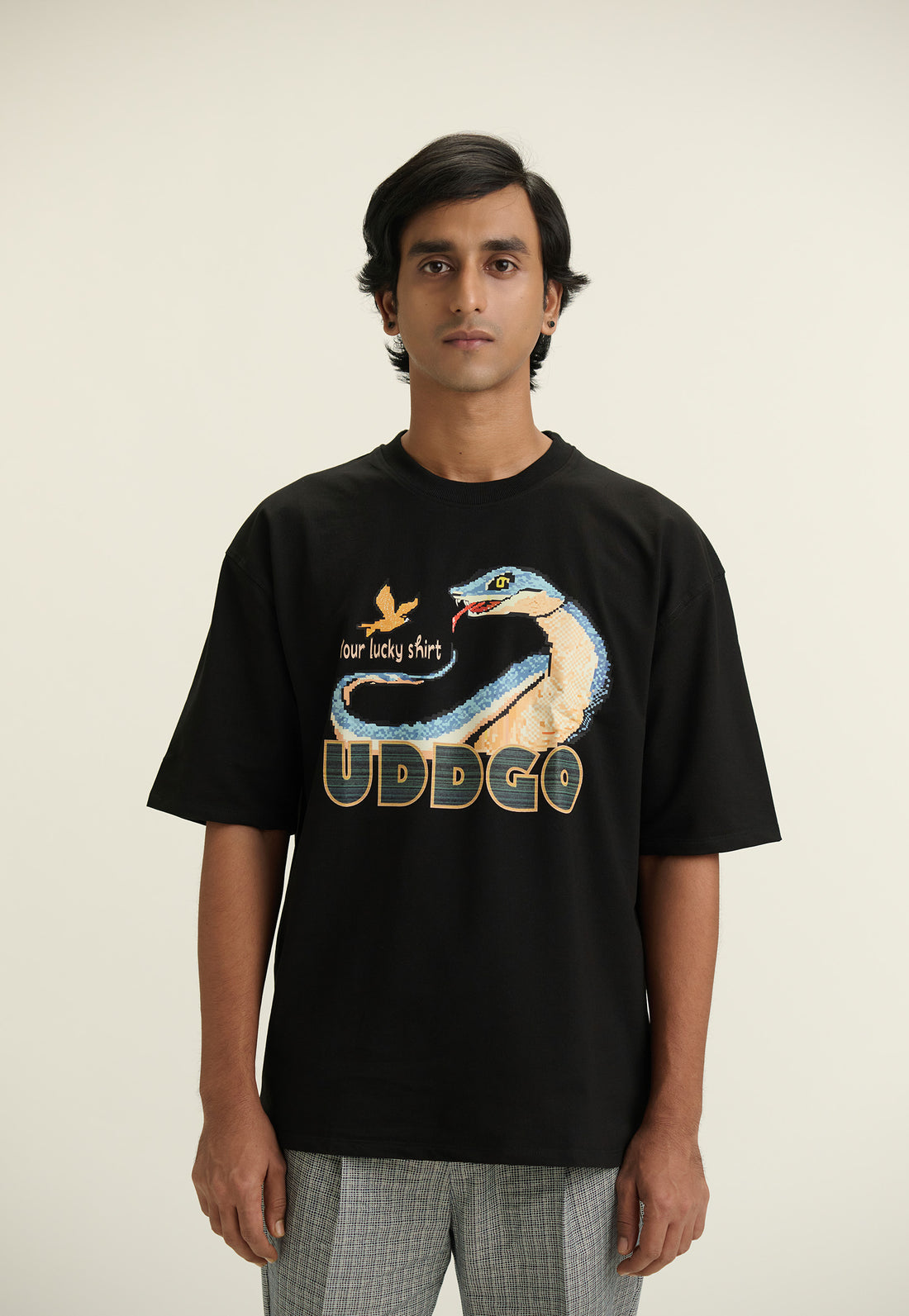 The Lucky Dragon T-shirt frames modern symbolism through a clean graphic lens. A long, stylised...