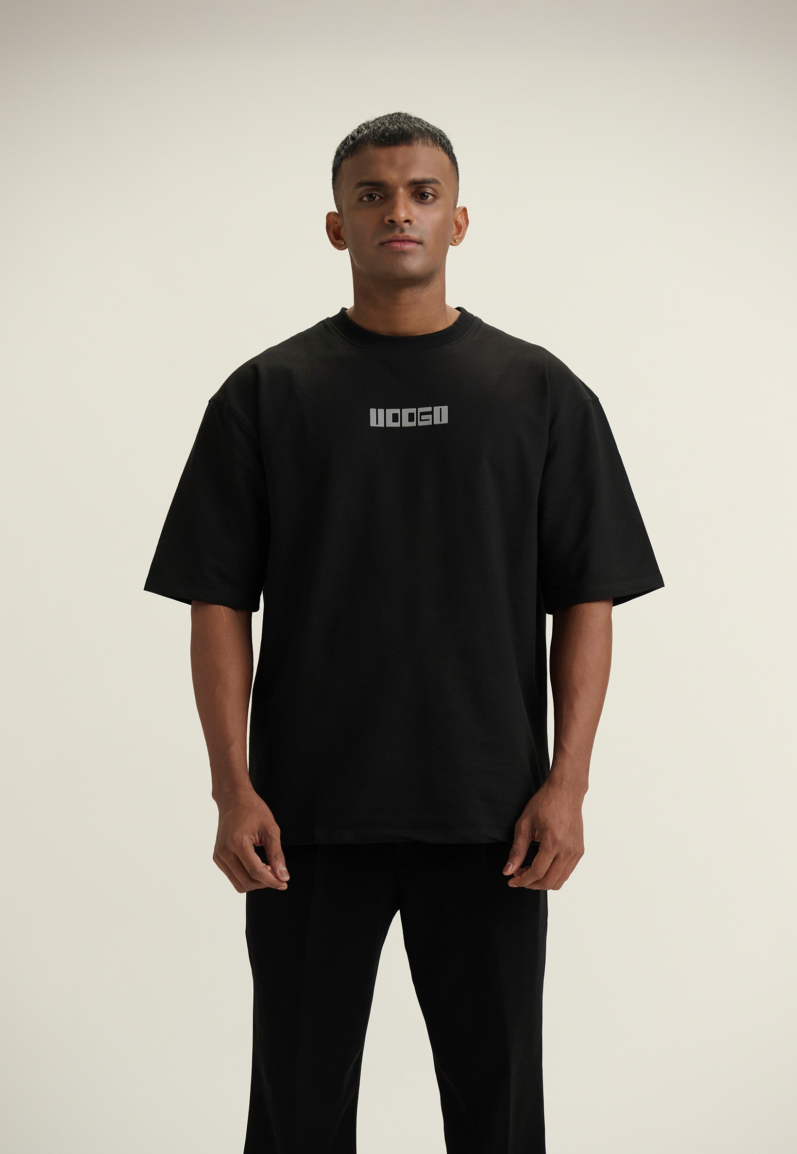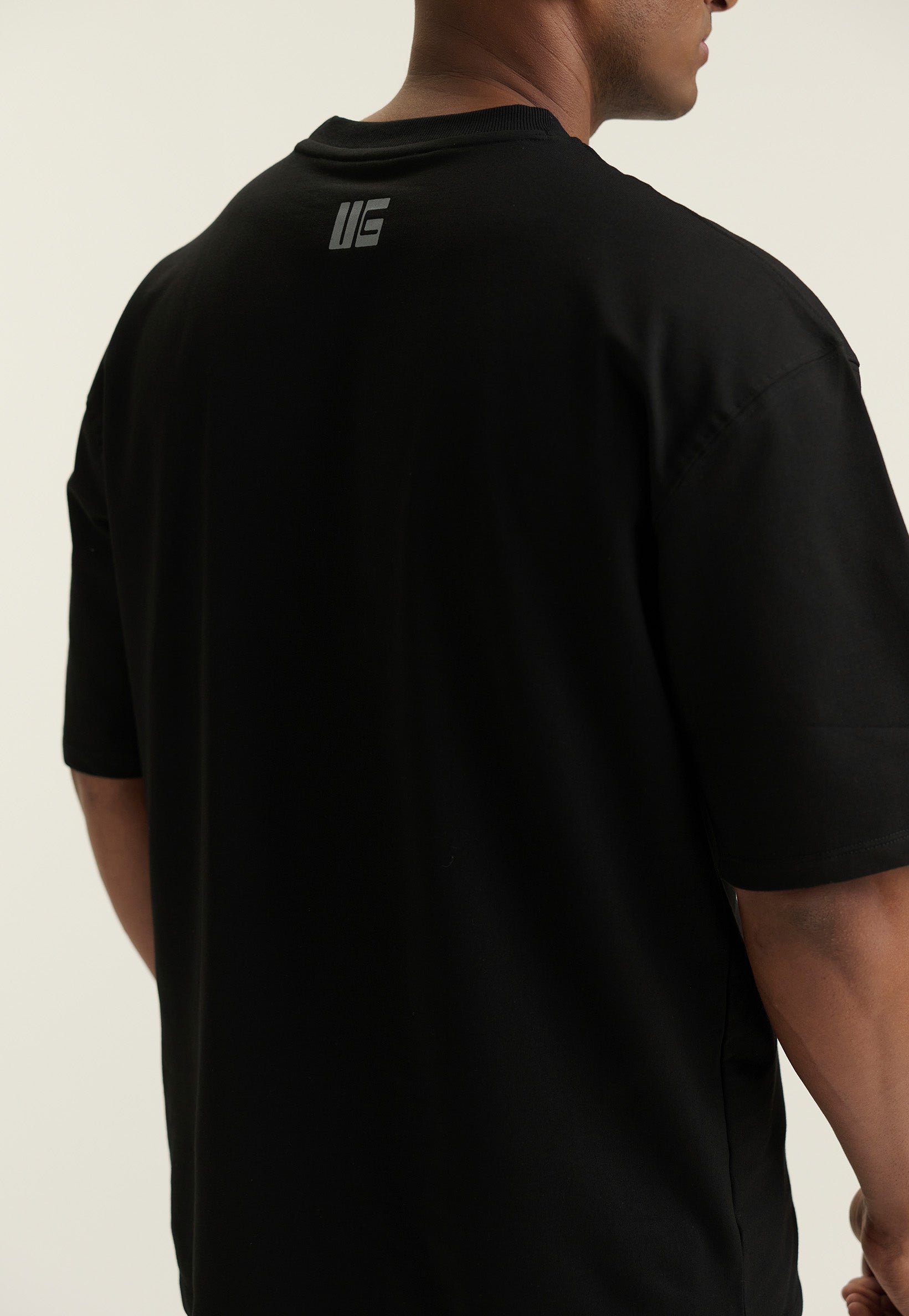 UGBLACKK is built as a precision black T-shirt with nothing accidental about it. Cut from a high-GSM UG cotton blend, it carries a dense, matte surface and a structured drape that holds its line throughout the day. The black has been carefully selected to retain depth over repeated wear, resisting the usual slide into grey. Double-stitched shoulders and a balanced neckline give the piece a quiet, almost tailored discipline, while the relaxed block keeps it easy on the body. It reads as a simple essential, but behaves with the calm confidence of a well–engineered garment.
